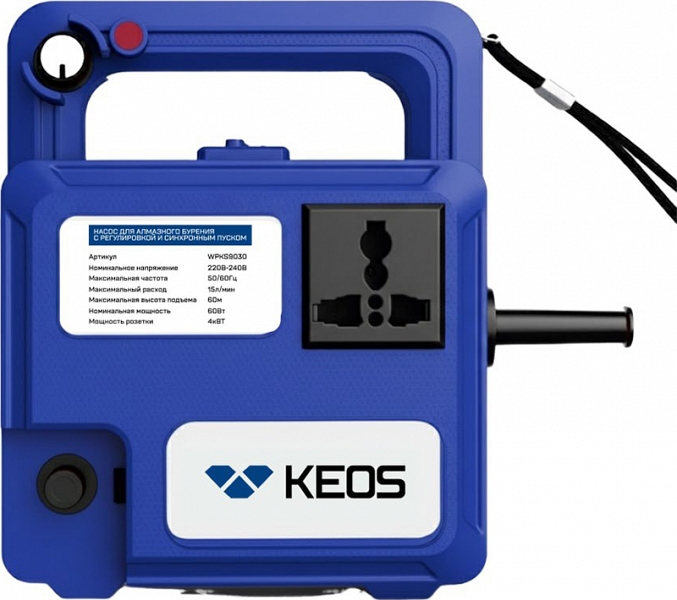 Цена и технические характеристики электрического водяного насоса с регулировкой и синхронным пуском для алмазного бурения Keos WPKS9030: