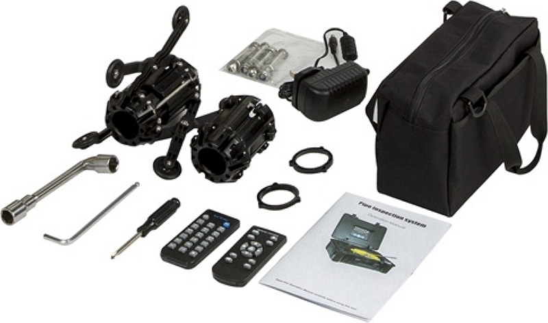 - 2 роликовые направляющие для головки камеры: мини направляющая 72 мм для труб Ø 100 – 125 мм, универсальная направляющая 120 мм для труб Ø 125 – 300 мм